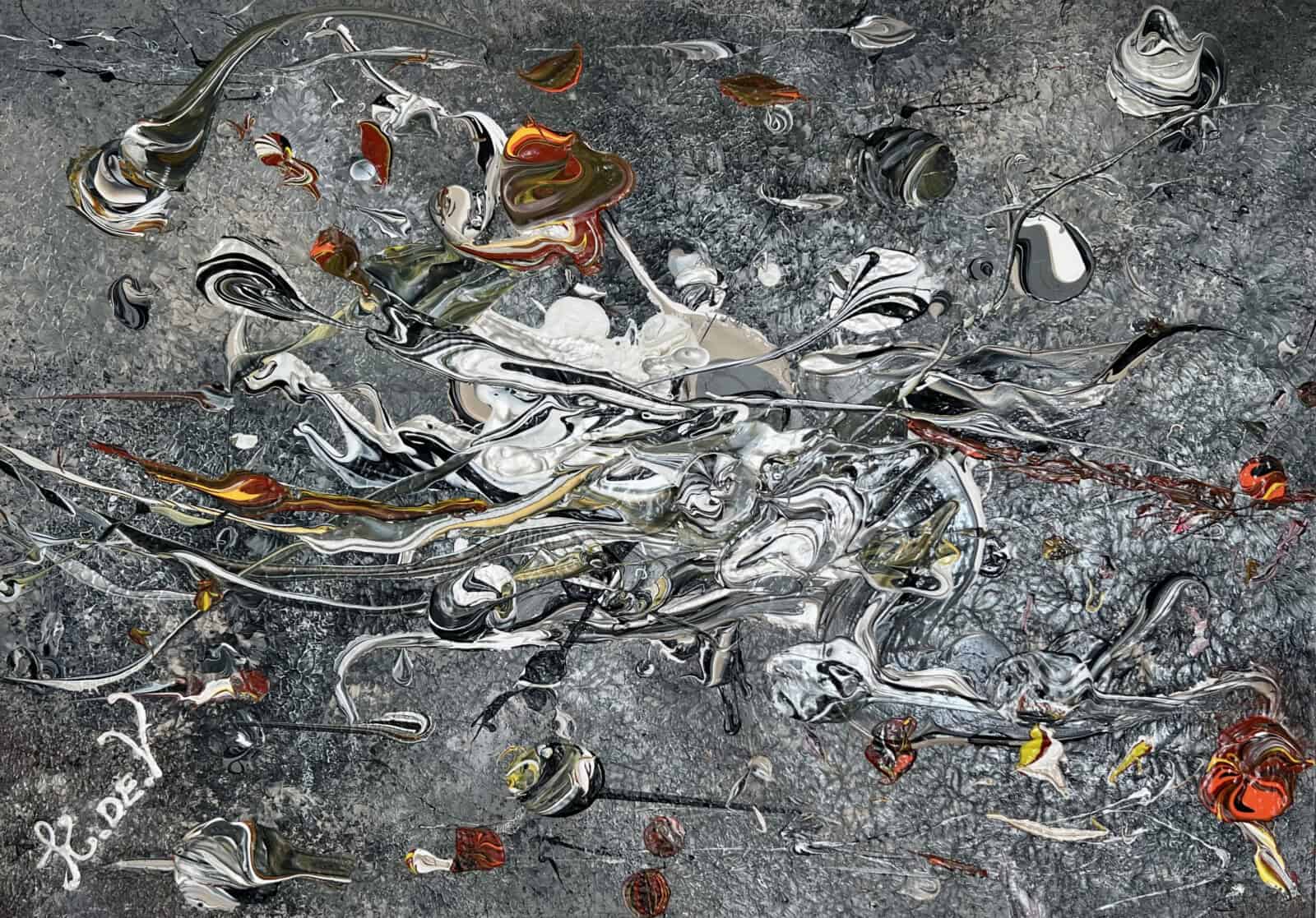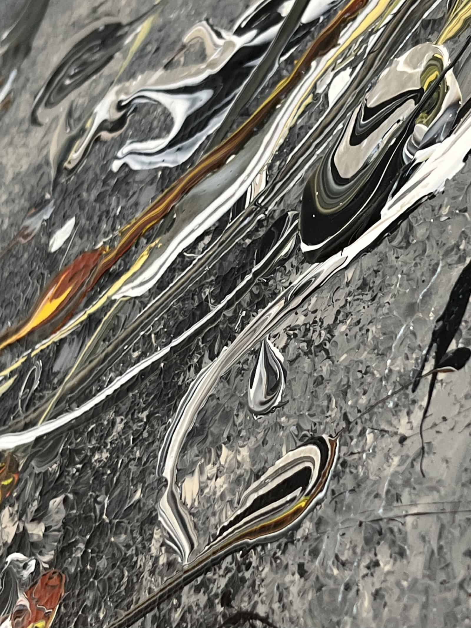 Fencing captures the sharp energy of movement, rhythm, and confrontation. A mix of grey and light tones clash and intertwine across the canvas, echoing the tension of duel and defense. The abstract composition balances precision with fluidity, evoking both elegance and strength — much like the sport that inspired its name.